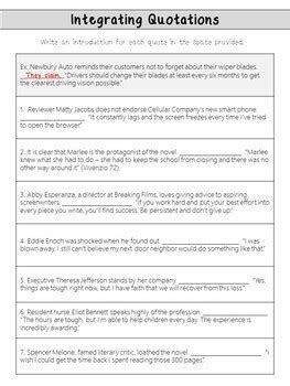 Integrating Quotes Practice Worksheet