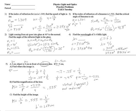 The Stephen Murray Optics Worksheet Answers cover topics such as refraction, reflection, diffraction, refractive index, Snell's Law, and polarization. The worksheet also covers topics such as lenses, prisms, dispersion, and interference.